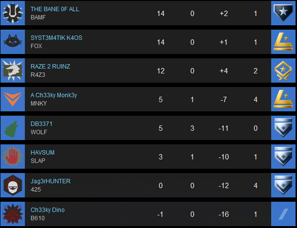 We didn’t name this crew – they bestowed the name upon themselves. Before the match got underway their fearless leader, RAZE 2 RUINZ, mentioned that they’d been so wrapped up in Firefight recently, he wasn’t sure if his squad would put up much of a competitive fight. Since we were just coming off a bye week ourselves, I figured that would help keep things nice and even.