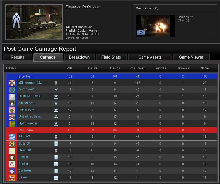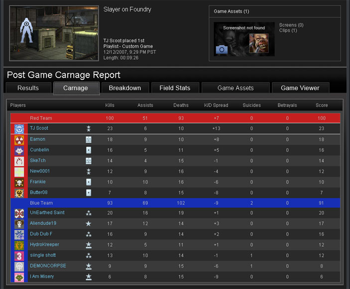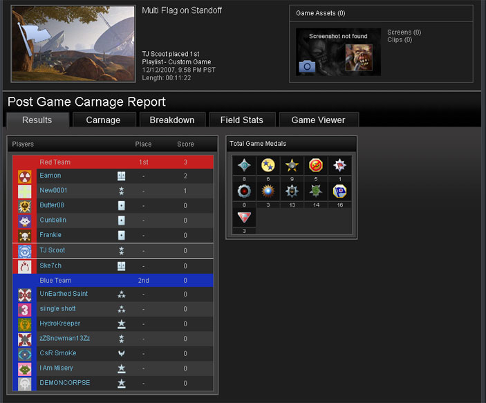 Standoff Multiflag is my current favorite gametype in Halo 3. I could play it all night, every night. It's the peanut butter and chocolate of Halo 3 at this very moment. Despite the drama and pagentry of the 100-99 upset loss in the previous game, it was not a glimpse into the future for Clantacular. Instead, their future involved watching Eamon dodge, weave and bob like Gale Sayers through their swiss cheese defense.  Granted, a bunch of us have been playing Standoff for a significant amount of time, but all that’s really done is show us where the weapons are and there’s not a whole lot of trickery to moving around the map or commandeering a power weapon.