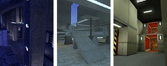 The inspiration for Chiron came from miniature golf. [Editor's Note: During development, this level was called "Putt-Putt."] A mini-golf course basically presents a player with a series of related puzzles to solve: get the ball from Point A to Point B, through these obstacles, in this many strokes. Chiron works in much the same way. The map is comprised of a series of rooms connected only by teleporter. Each room presents the player with a number of tactical opportunities and obstacles and the puzzle in each is, "get out of here alive."
