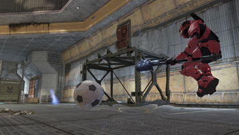 As I mentioned above, Bungie has added a slew of new objects to the Forge palette for Foundry. You now have the ability to place and configure large objects like walls, stairs and ramps to literally craft your own unique multiplayer space. You can even place your own mancannons and shield doors. However, as cool as these items are, it's the wacky addition of a giant soccer ball that garnered the most attention from our visitors. And why not... after all, why on Earth would we include a gigantic ball in a sci-fi futurisitc shooter? Why not?