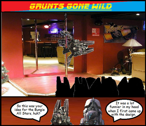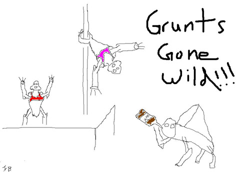 I should have known that asking for screenshots themed “Grunts Gone Wild” would turn my inbox into the stuff of nightmares. This week’s submissions were indeed stuffed with crudely explicit takes on Grunt's Anatomy. Come on. Two Grunts, One Cup? Seriously? I spent all of last night curled up in a ball, unsuccessfully attempting to purge these foul visions from my mind.