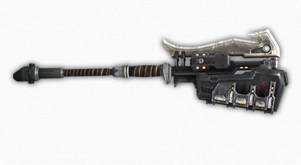 The Type-2 Energy Weapon/Hammer (or T2 EW/H) is more commonly identified as the Gravity Hammer. This weapon consists of a haft, head, and blade. A field generator, which is located in the head, emits a kinetic pulse (~4.5 meters). The exact mechanism by which it functions is currently under investigation.