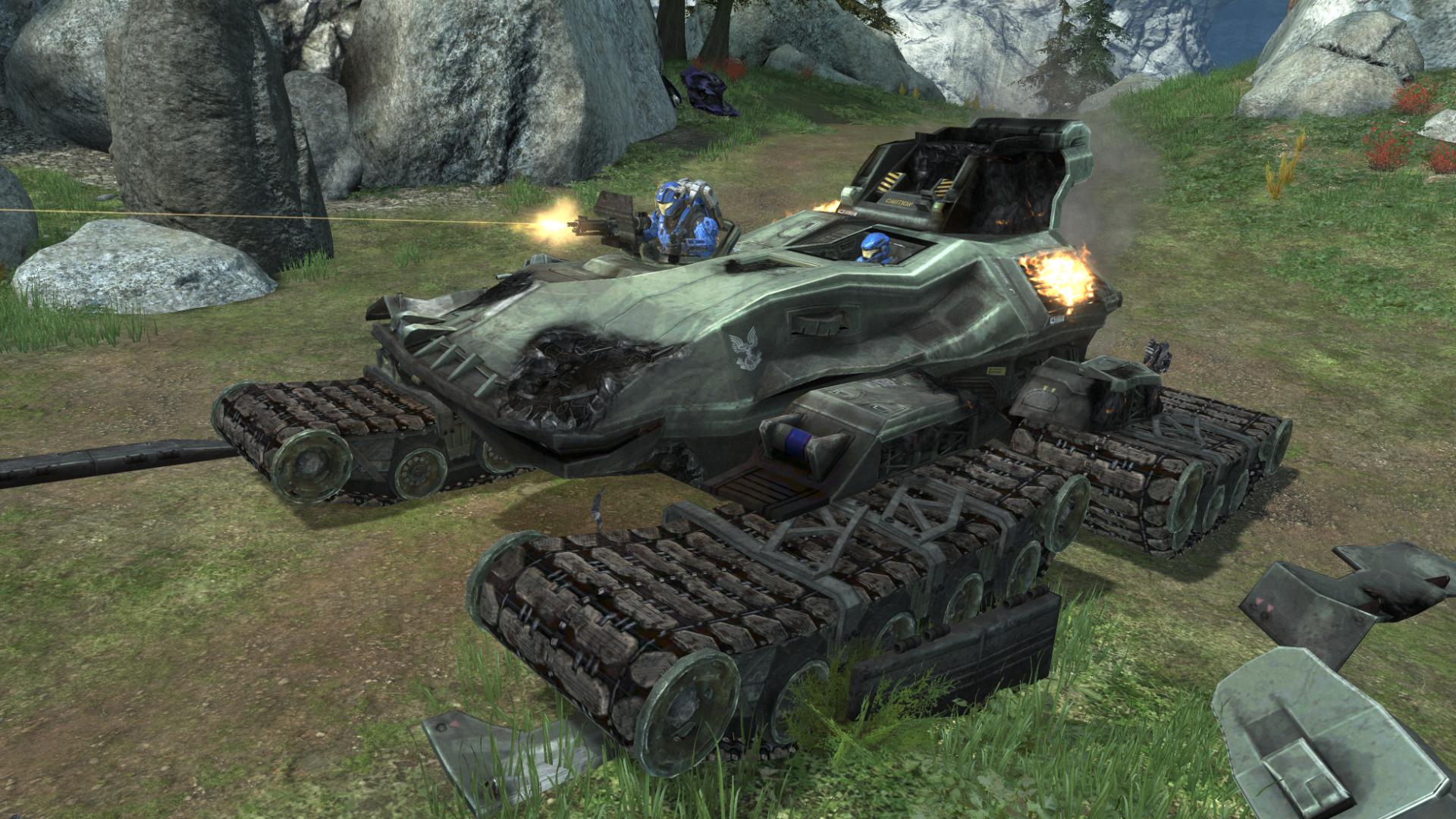A tank survuved a shot from my Spartan Laser and lost some important parts.
